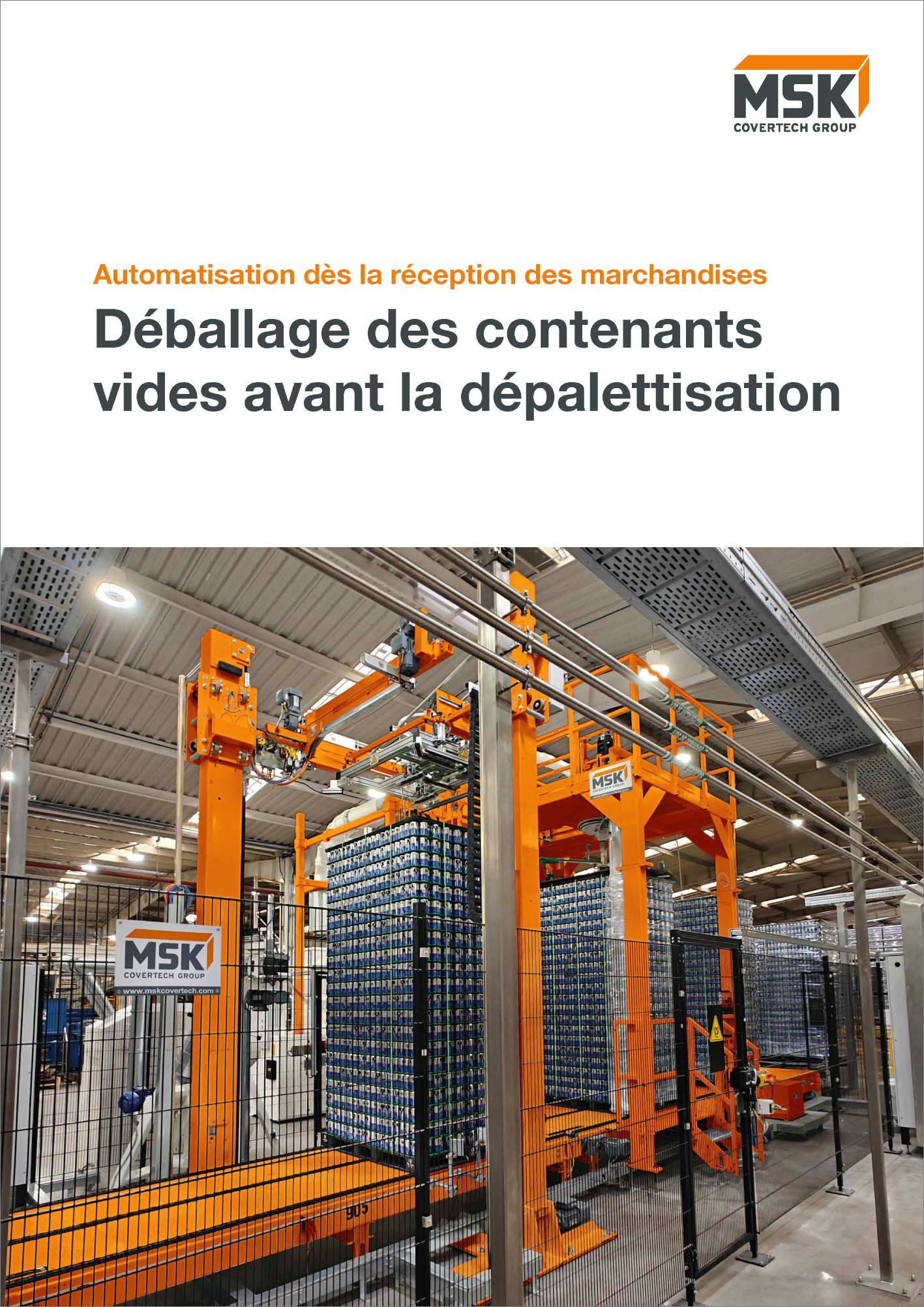 Avec la Defotech et la Destraptech, MSK propose un système de déballage entièrement automatisé pour les charges palettisées avec des contenants vides. Ces systèmes s’intègrent bien aux flux de matériaux existants et permettent de manière fiable, le retrait des films d’emballage et du cerclage — pour une efficacité maximale et un niveau de sécurité optimal.